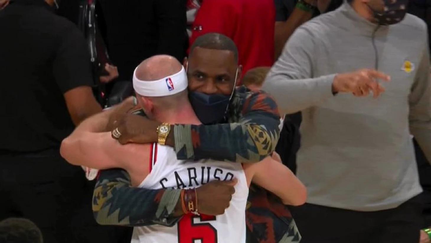 Леброн Джеймс и Алекс Карузо тепло поприветствовали друг друга во время матча в Лос-Анджелесе