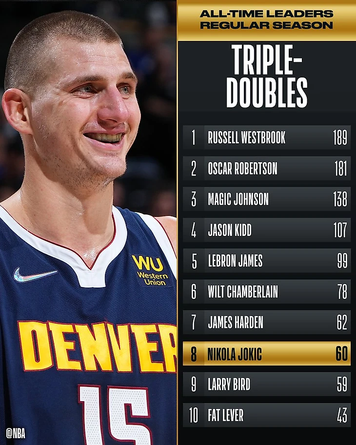 Никола Йокич обошел Лэрри Берда и занимает 8-е место по трипл-даблам в истории НБА