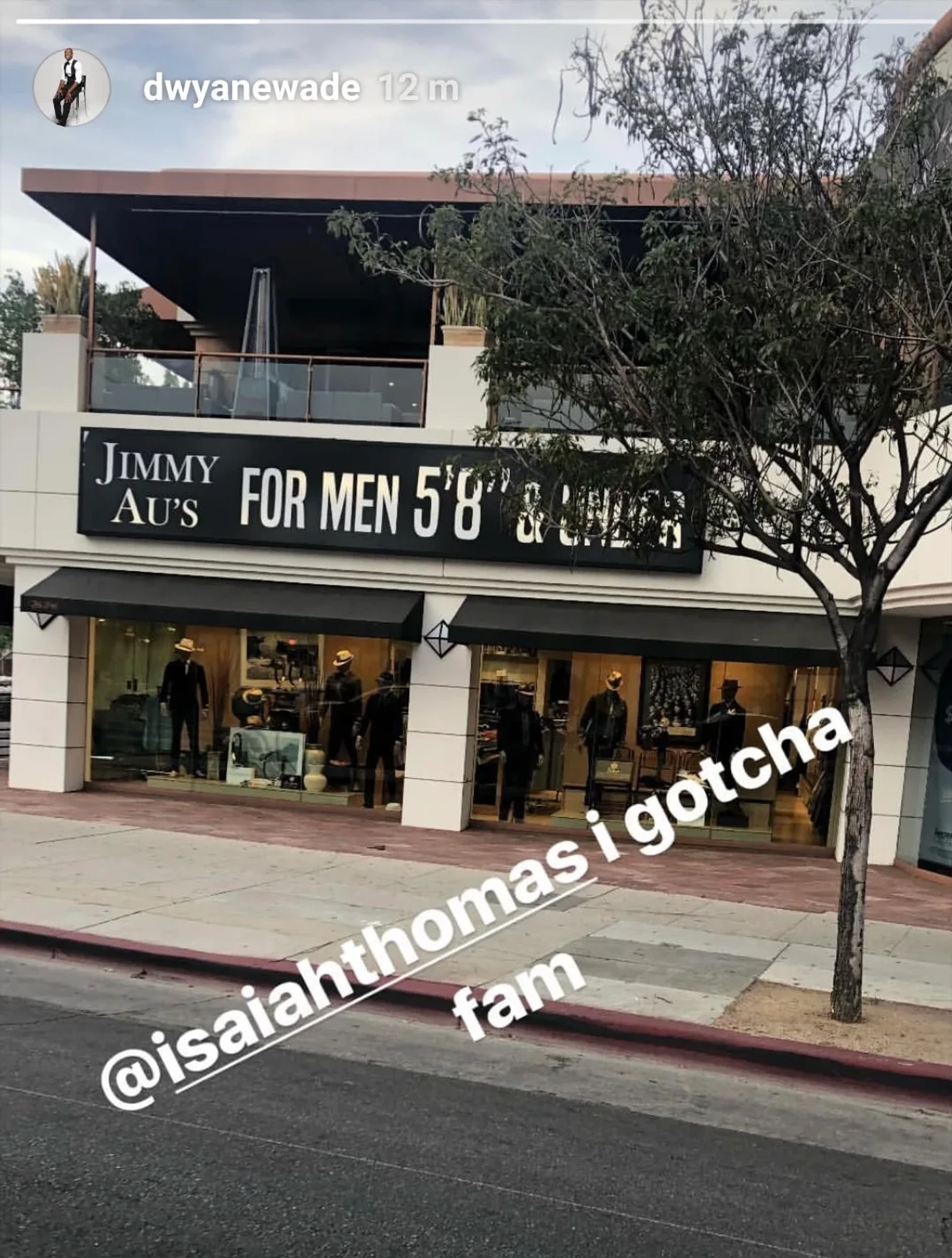 Уэйд выложил фотографию магазина, в котором продается одежда для мужчин, рост которых 170 см и ниже, упомянув при этом Айзейю.