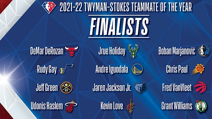 НБА представила список претендентов на получение награды Лучшему одноклубнику имени Тваймена-Стоукса в сезоне-2021/22.