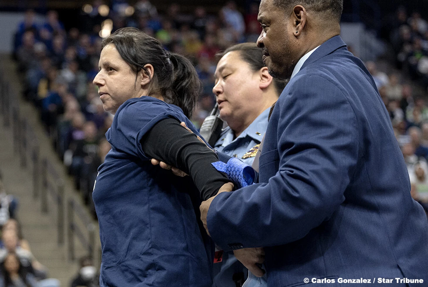 Матч «Миннесота» – «Клипперс» был прерван из-за того, что болельщица попыталась приклеить себя к площадке в знак протеста