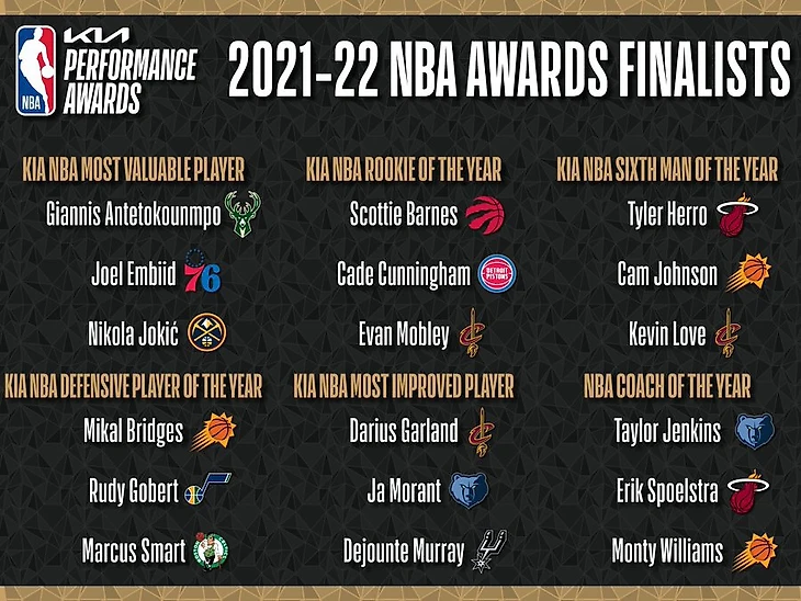 В прямом эфире на TNT НБА официально объявила имена претендентов на индивидуальные призы за регулярный сезон-21/22.