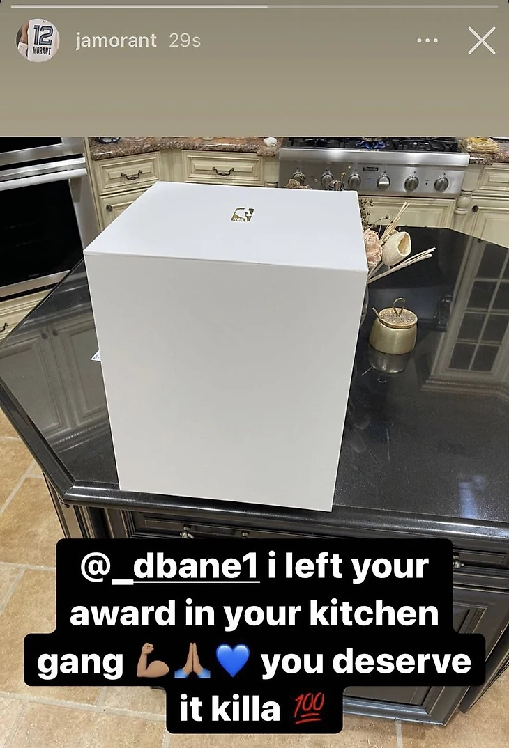 Морэнт был признан самым прогрессирующим игроком сезона-2021/22 в понедельник. Лидер «Гризлис» выложил фотографию коробки с призом, которую оставил на кухне товарища по команде.
