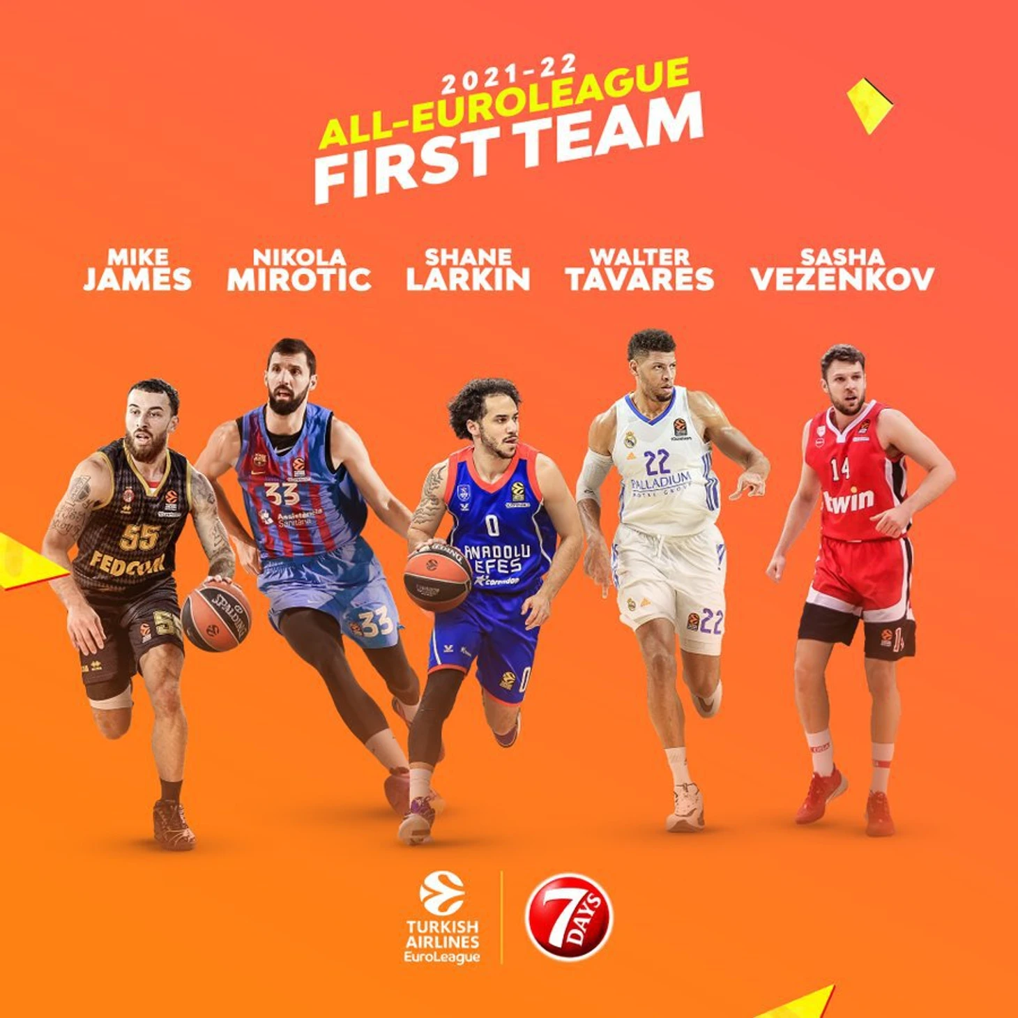 Джеймс, Ларкин и Миротич – в первой символической пятерке Евролиги-21/22