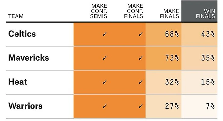 Шансы «Селтикс» оцениваются в 43%. На втором месте «Мэверикс» – 35%.