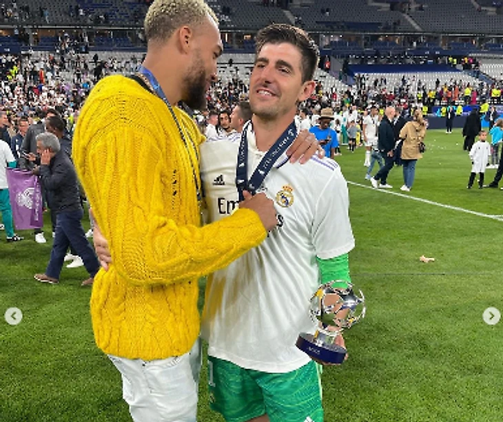 Француз опубликовал в Instagram фотографии с игроками мадридского клуба Каримом Бензема (Франция), Эденом Азаром и Тибо Куртуа (Бельгия).
