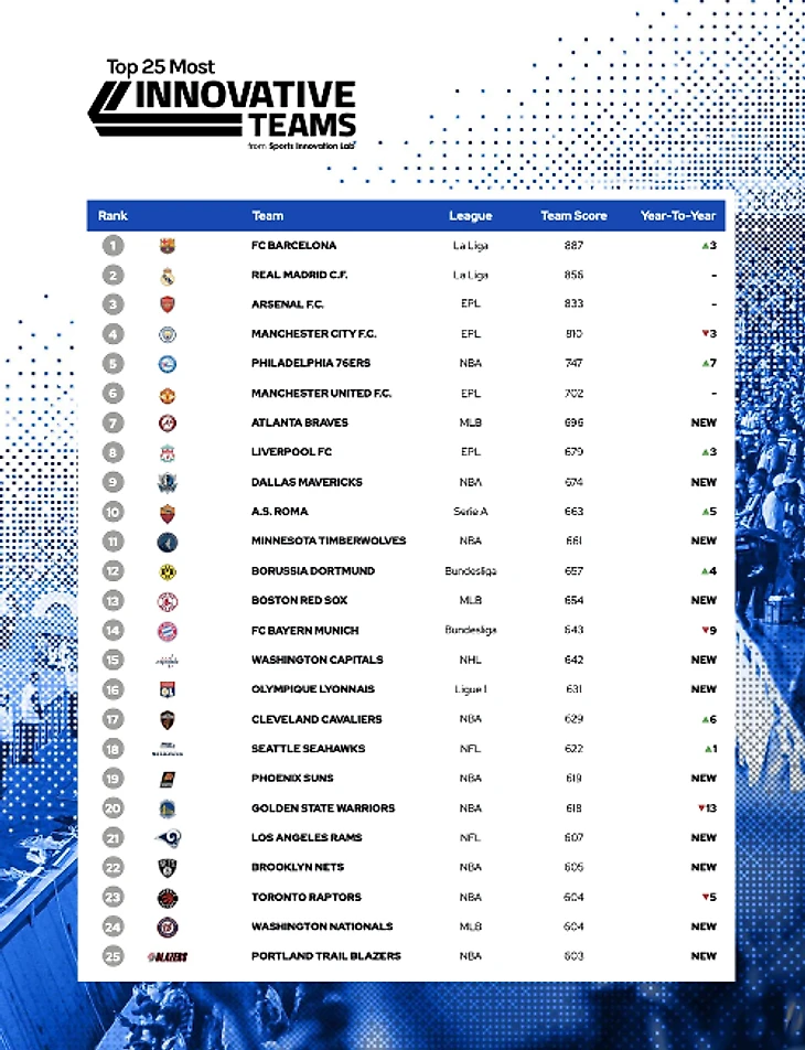 Команды НБА в рейтинге 25 самых инновационных спортивных команд по версии Sports Innovation Lab: