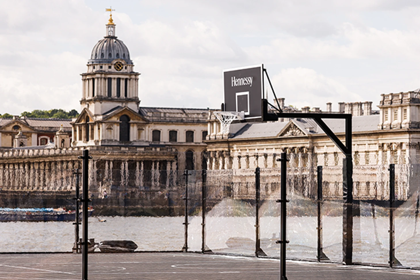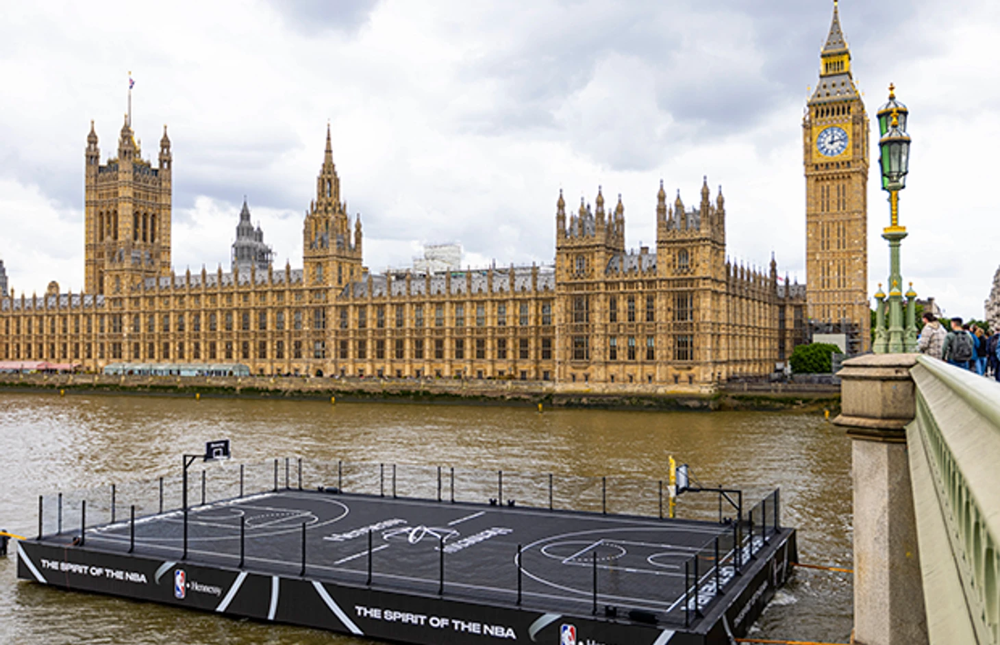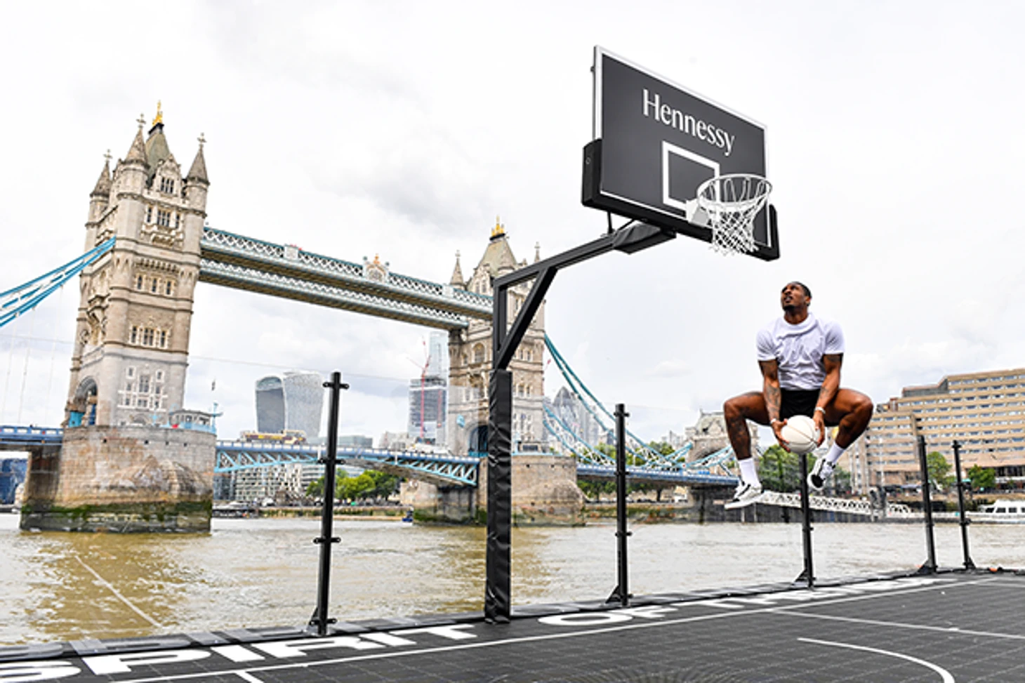 Hennessy и НБА представили первую в Великобритании плавучую баскетбольную площадку, которая была открыта на Темзе в Лондоне в честь 75-летия лиги и финальной серии плей-офф 2022 года.