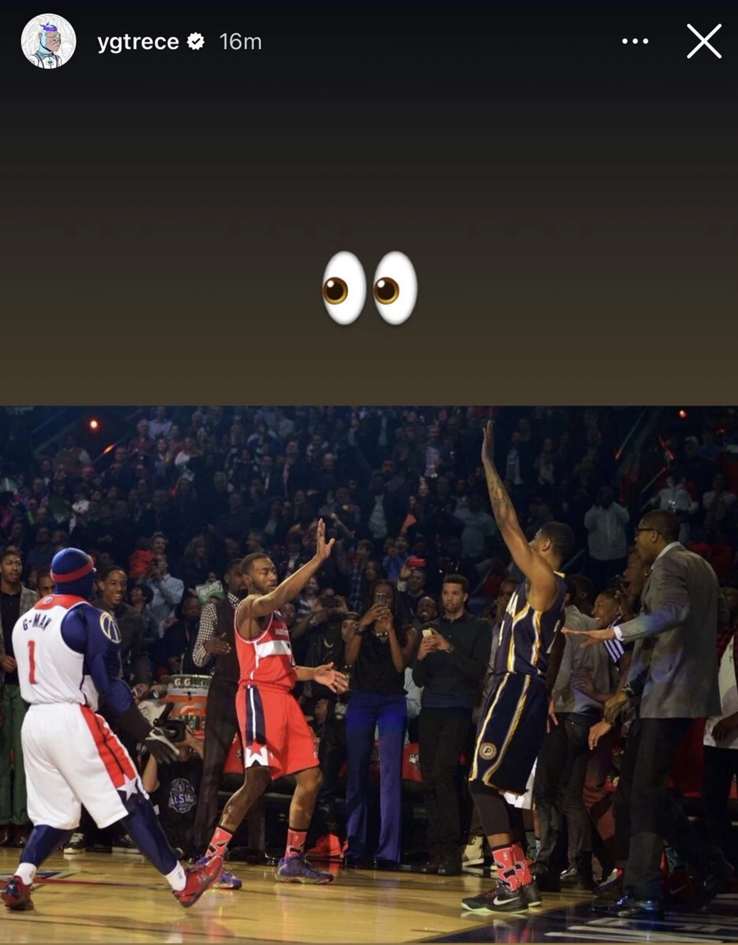 Один из лидеров «Клипперс» Пол Джордж отреагировал на новость. Форвард выложил в социальных сетях фотографию, сделанную на конкурсе по броскам сверху. На ней они с Уоллом стоят с поднятыми руками, как бы приветствуя друг друга.
