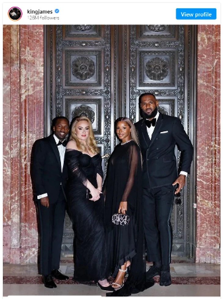 На мероприятии, которое состоялось в субботу, 25 июня, присутствовали жена Леброна Саванна Джеймс, а также его агент и давний друг Рич Пол со своей подругой известной певицей Адель.