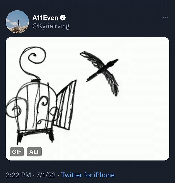В твиттере Кайри Ирвинга появилось изображение птицы, вырывающейся из клетки