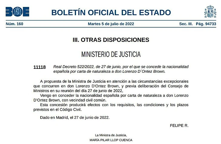Браун сегодня получил испанское гражданство.