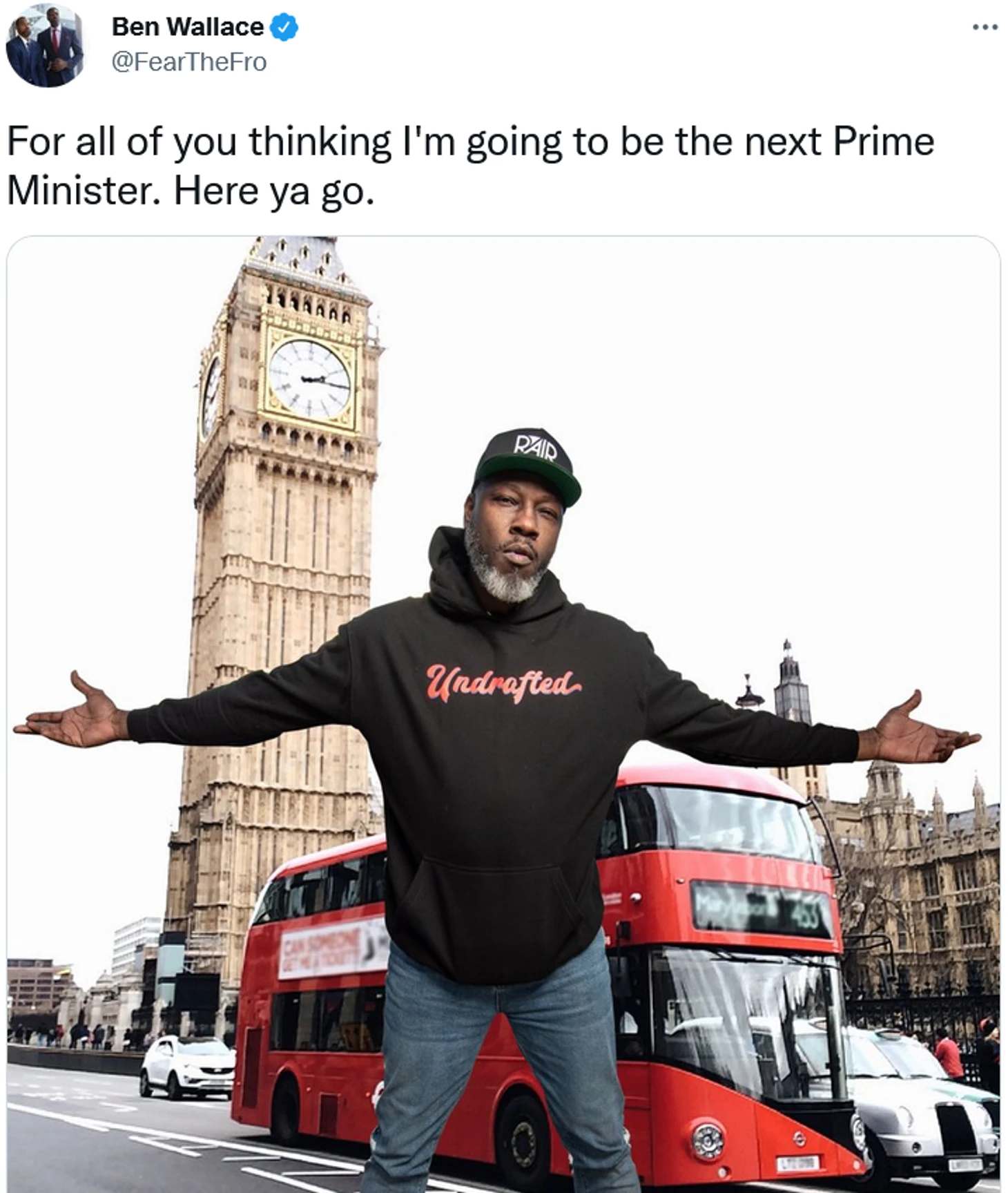 «Всем, кто думает, что я стану следующим премьер-министром. Вот, пожалуйста», – написал член Зала славы баскетбола в Twitter и опубликовал свое фото на фоне Биг-Бена.