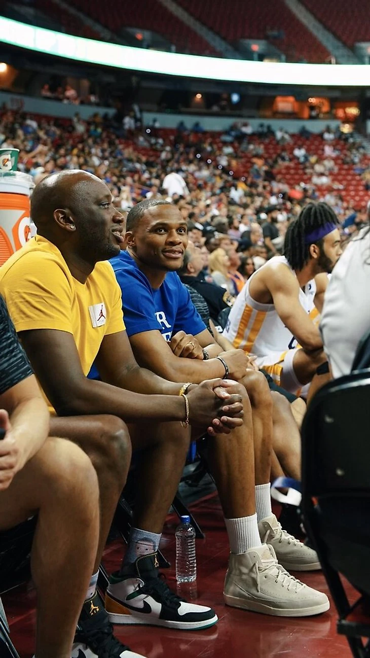 Разыгрывающий «Лейкерс» Расселл Уэстбрук посетил второй игровой день Летней лиги в Лас-Вегасе.