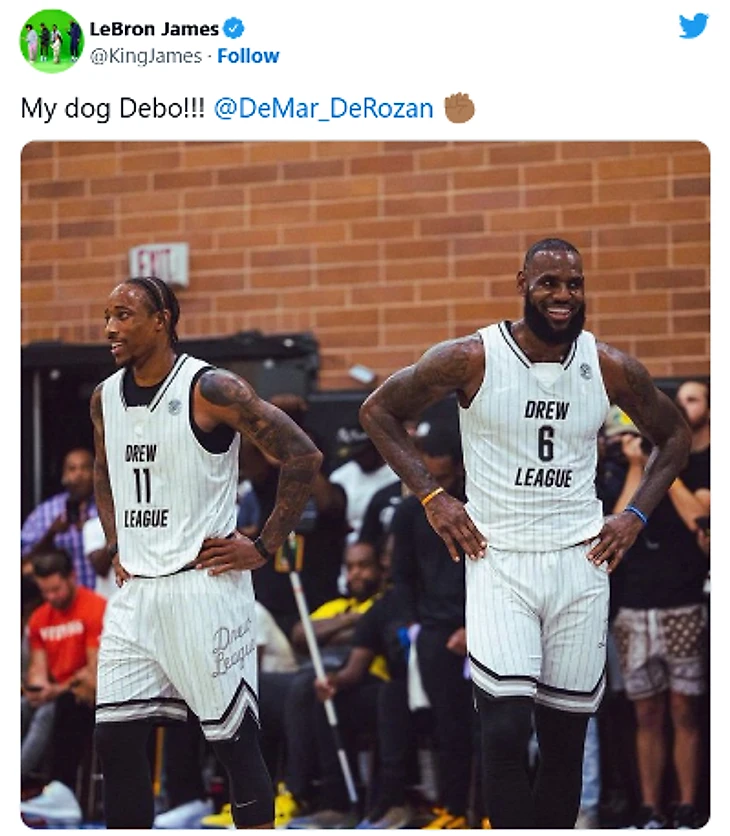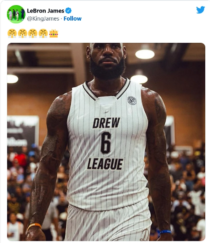 Звездный форвард «Лейкерс» Леброн Джеймс отреагировал в Twitter на свое выступление в полулюбительской лиге Drew League в субботу.