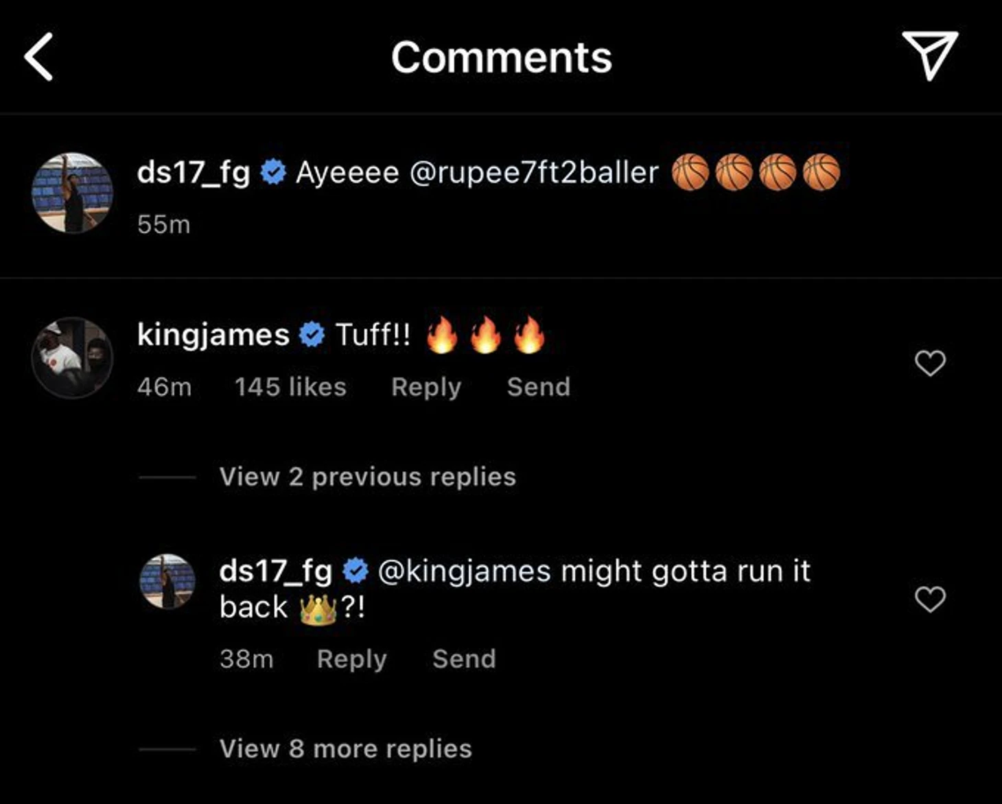 «Может, стоит вернуться?» – написал Шредер лидеру «Лейкерс» Леброну Джеймсу, который прокомментировал видео бывшего одноклубника в Instagram.