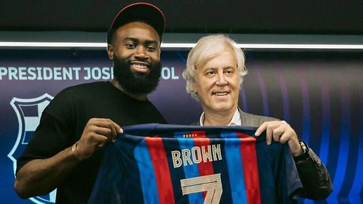 Брауну подарили футболку «Барсы» с его фамилией. На арене «Камп Ноу» американец продемонстрировал несколько движений с баскетбольным мячом.