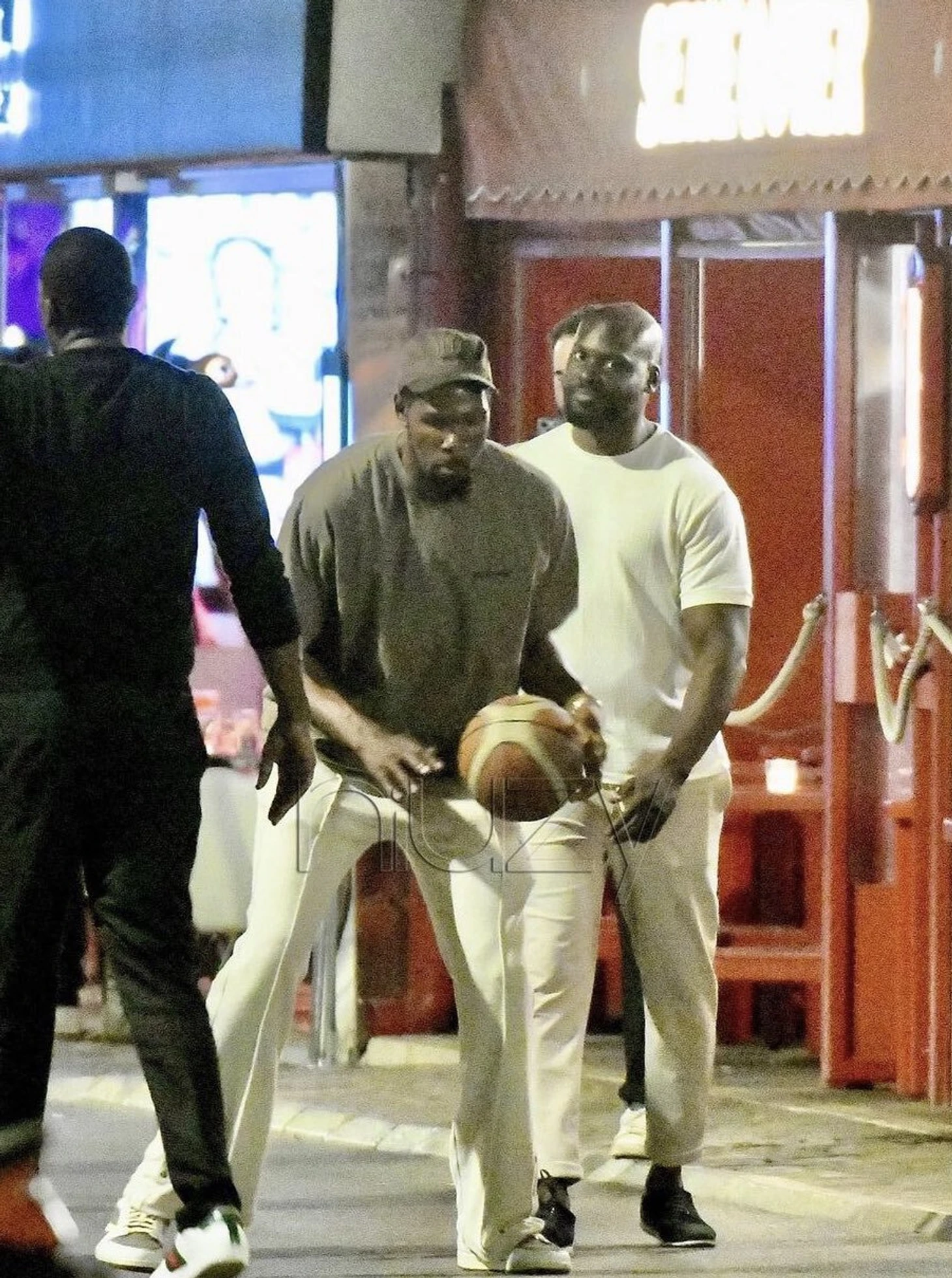 Звездный игрок совершил прогулку с баскетбольным мячом по ночному Сан-Тропе.