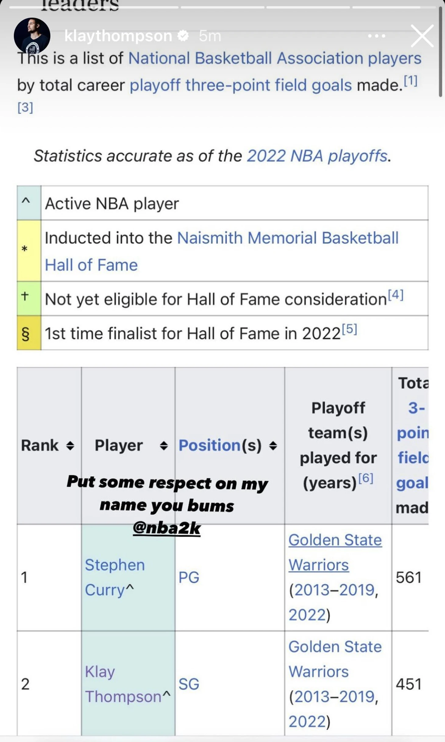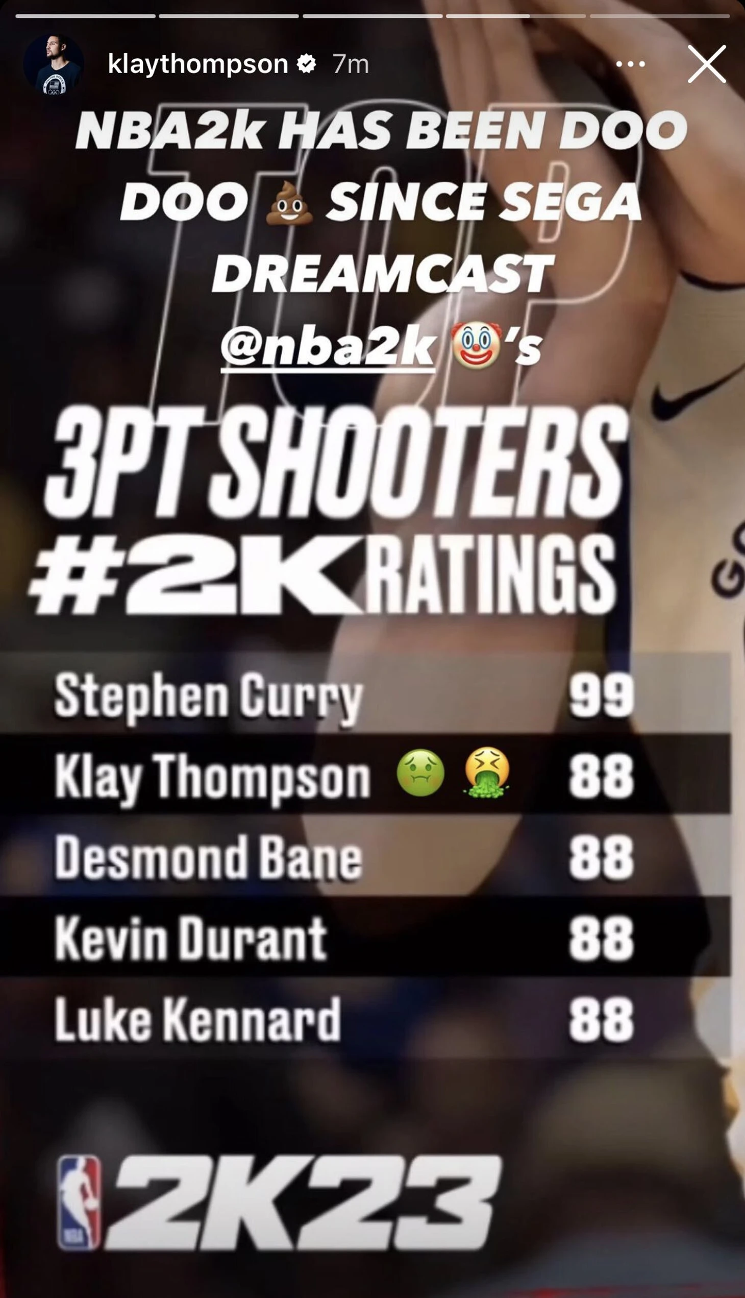 Клэй Томпсон недоволен показателем 3-очкового в новой 2К. Он на 11 пунктов уступает Карри