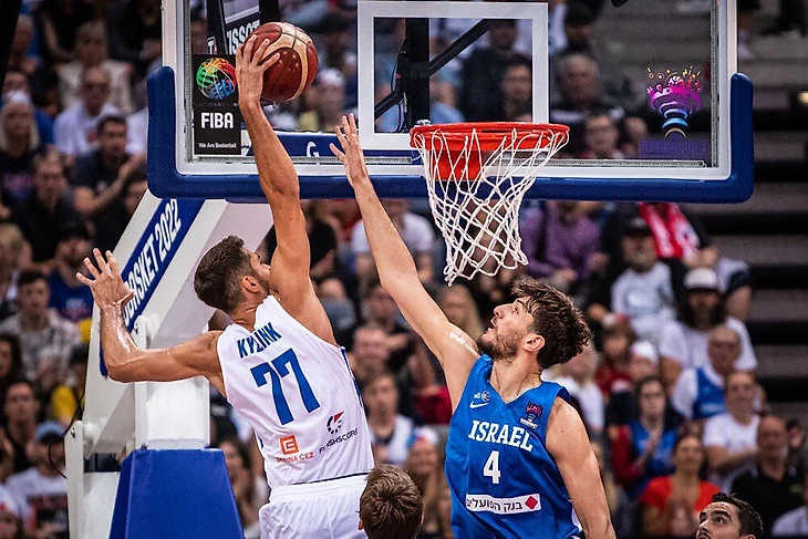 Атакующий защитник сборной Чехии Томаш Кизлинк в первой четверти матча против команды Израиля прошел вдоль лицевой линии и исполнил эффектный данк одной рукой через Романа Соркина.