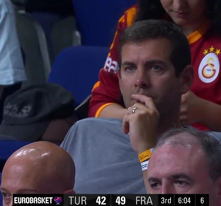 Функционер был замечен на трибунах во время матча 1/8 финала между Францией и Турцией (87:86, ОТ).