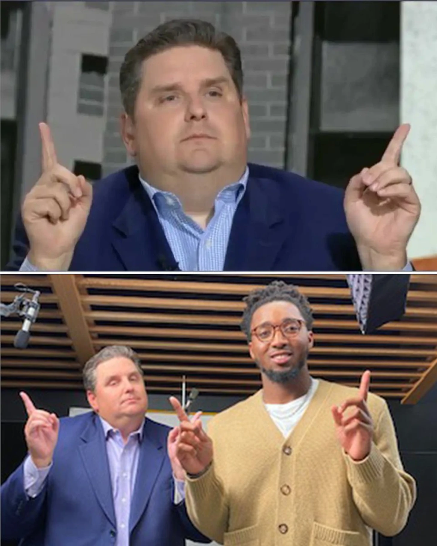 Митчелл и Уиндхорст воссоздали ставший известным мем с журналистом. Брайан исполнил жест с поднятыми вверх пальцами после рассуждений о бывшей команде 3-кратного участника Матча звезд «Юте» в разгар межсезонья-2022.
