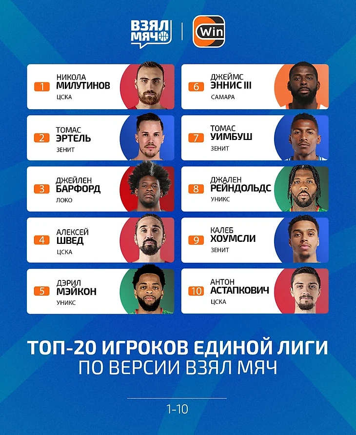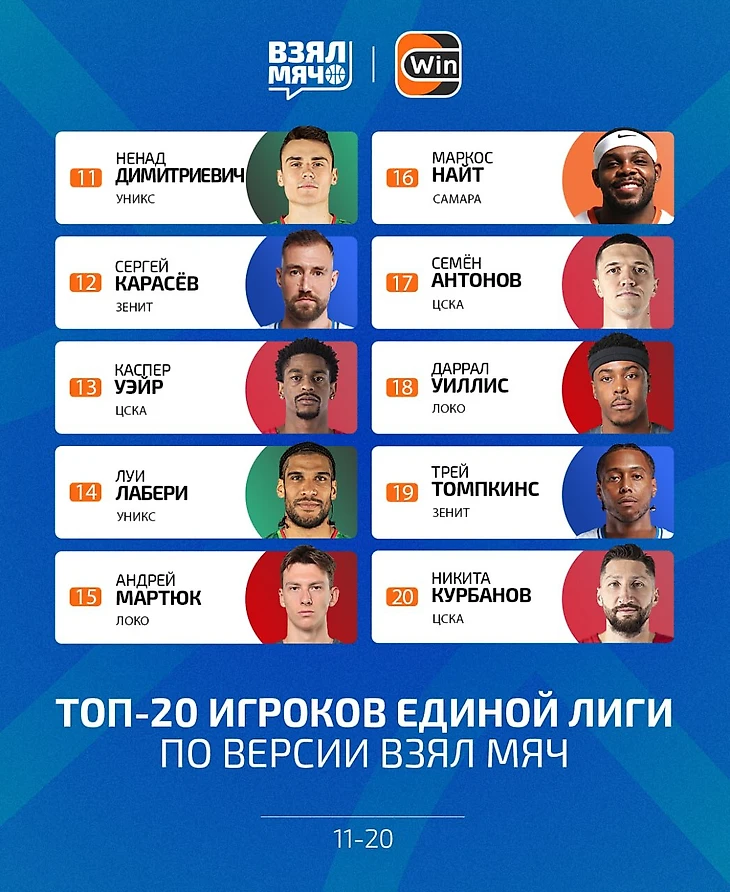 Топ-20 игроков Единой лиги ВТБ по версии «Взял мяч»: