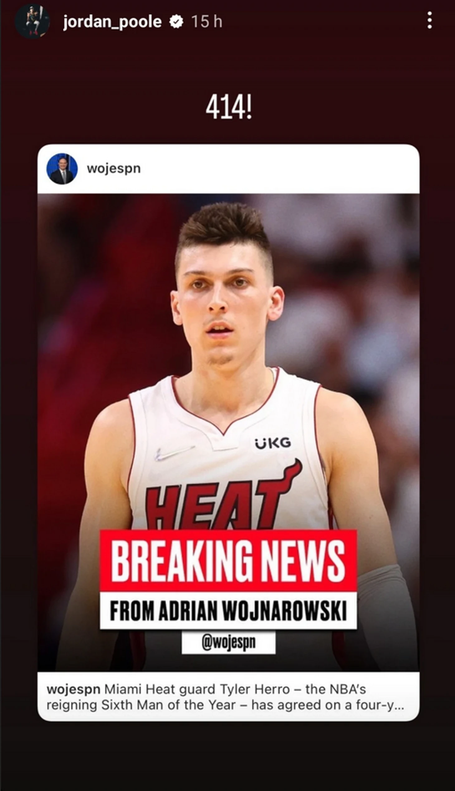Атакующий защитник «Голден Стэйт» Джордан Пул поздравил Тайлера Хирро («Майами») с продлением контракта.