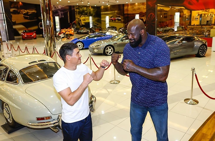 Российский боксер Дмитрий Бивол опубликовал фотографии, на которых он стоит вместе с легендарным игроком НБА Шакилом О′Нилом.
