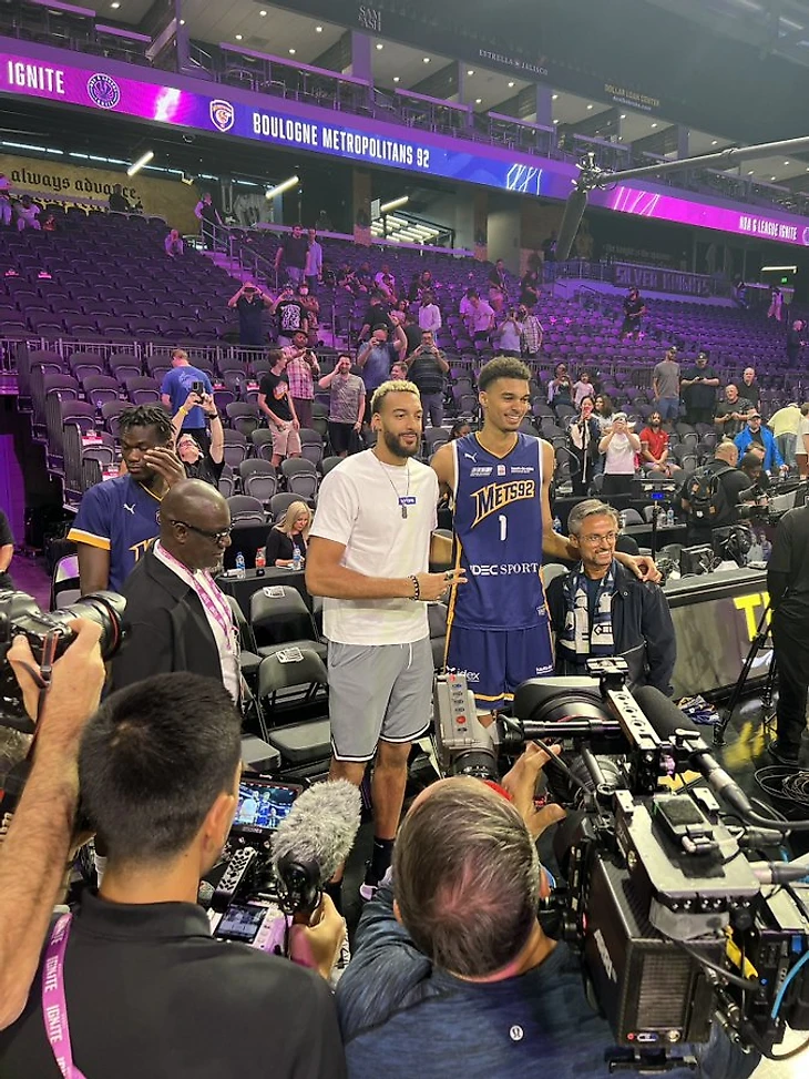 Вембаньяма вместе с «Метрополитаном» приехал в США на товарищеские матчи с командой молодых талантов G-лиги «Игнайт». Джеймс и его «Лейкерс» проводят в Лас-Вегасе предсезонные матчи.