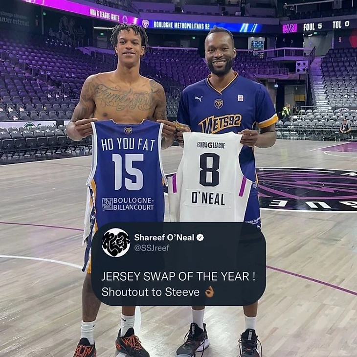 Форвард «Метрополитана» Стив О-Ю-Фат и игрок команды G-лиги «Игнайт» Шариф О’Нил обменялись майками после товарищеского матча между командами в четверг.