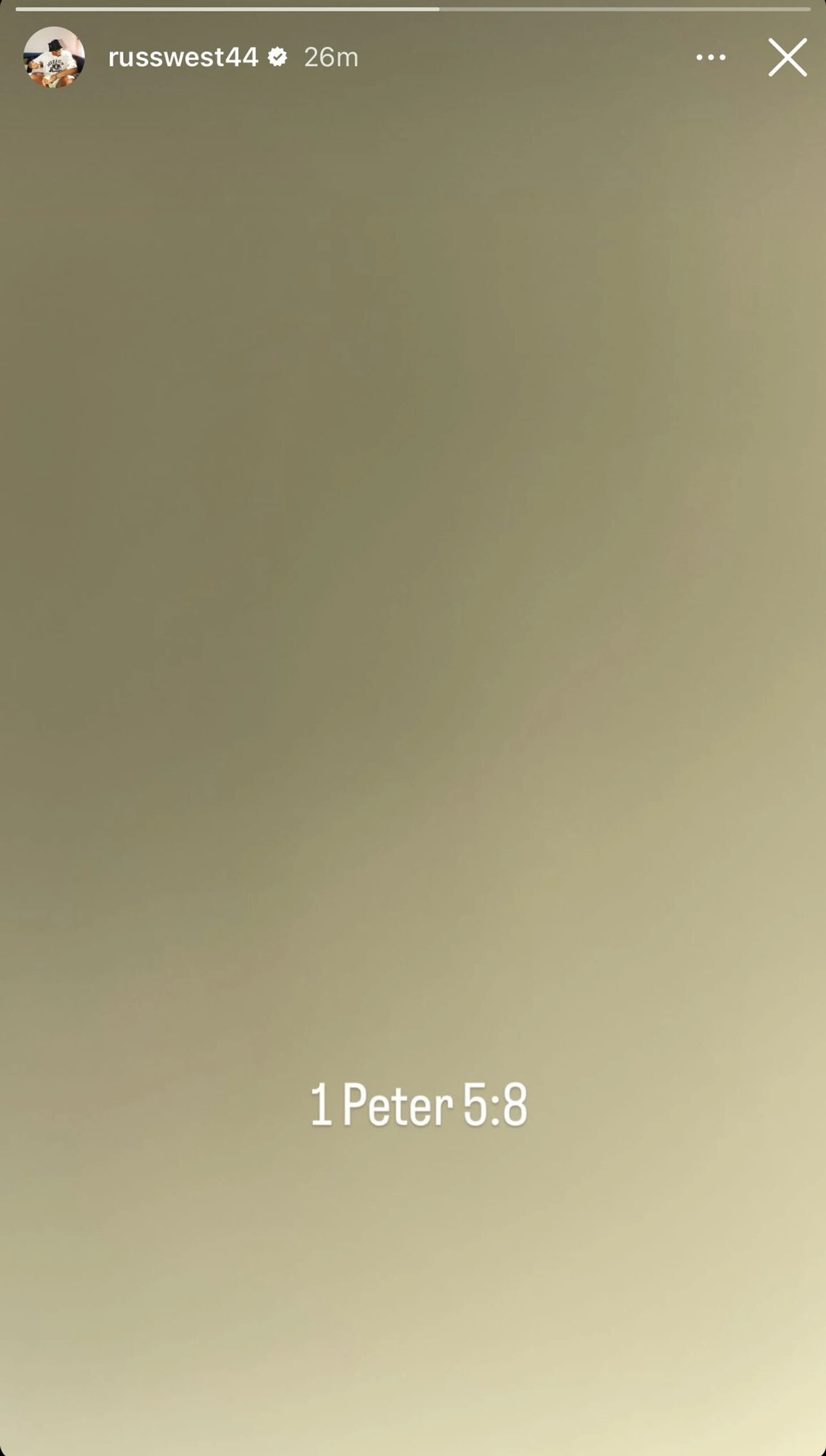 Звездный разыгрывающий «Лейкерс» Расселл Уэстбрук опубликовал в Instagram загадочный пост, в котором процитировал стих из христианской Библии.