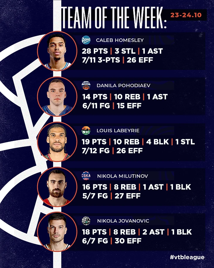 По итогам матчей Единой лиги ВТБ 23-24 октября была составлена символическая пятерка.