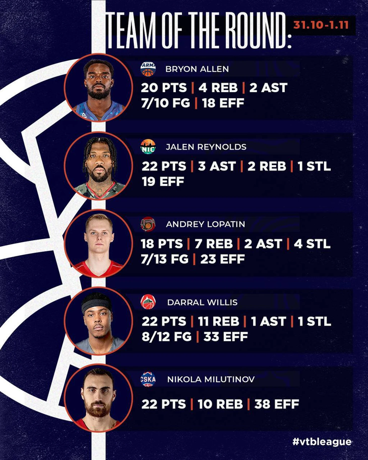 Аллен, Лопатин, Уиллис, Милутинов и Рейнольдс – в символической пятерке тура в Лиге ВТБ