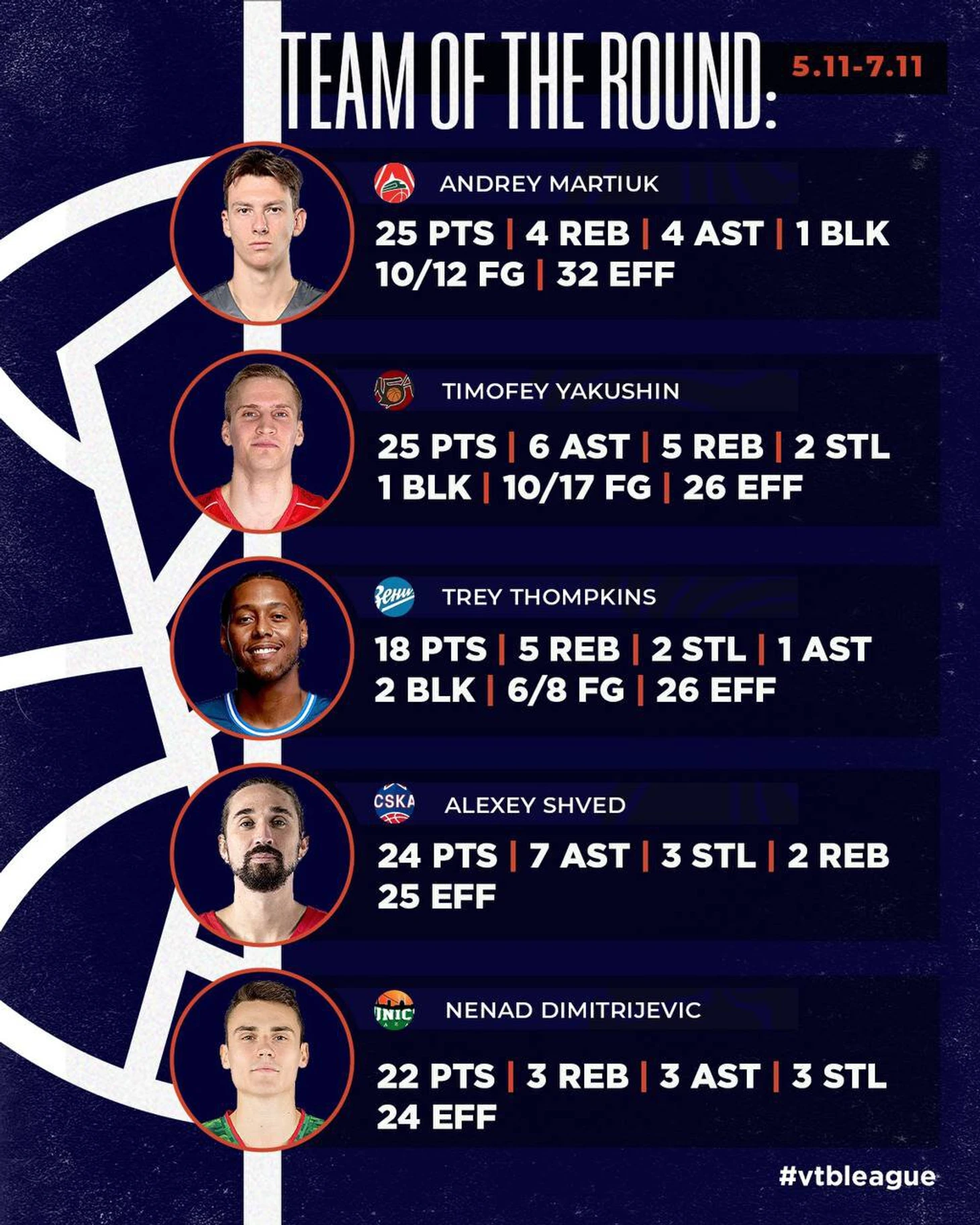 По итогам матчей Единой лиги ВТБ 5-7 ноября была составлена символическая пятерка игроков.
