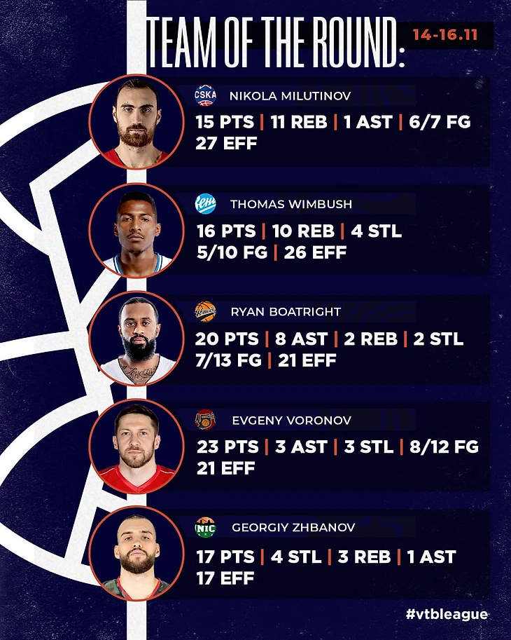 Единая лига ВТБ представила символическую пятерку лучших игроков игрового раунда.