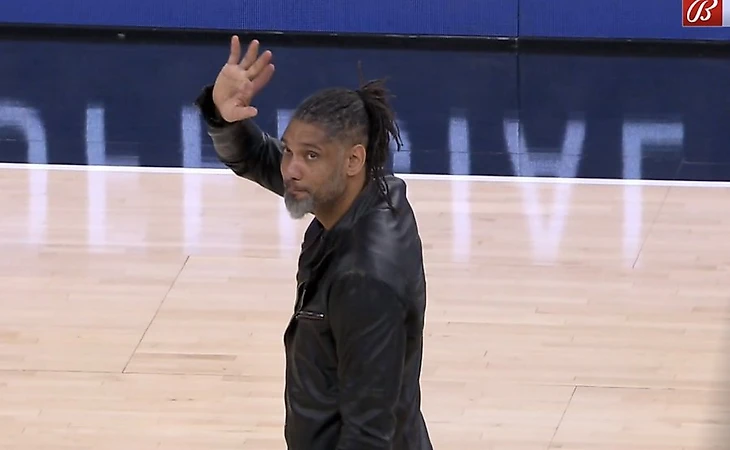 Прославленный игрок «Сперс» Тим Данкан посетил домашний матч техасской команды против «Санз».