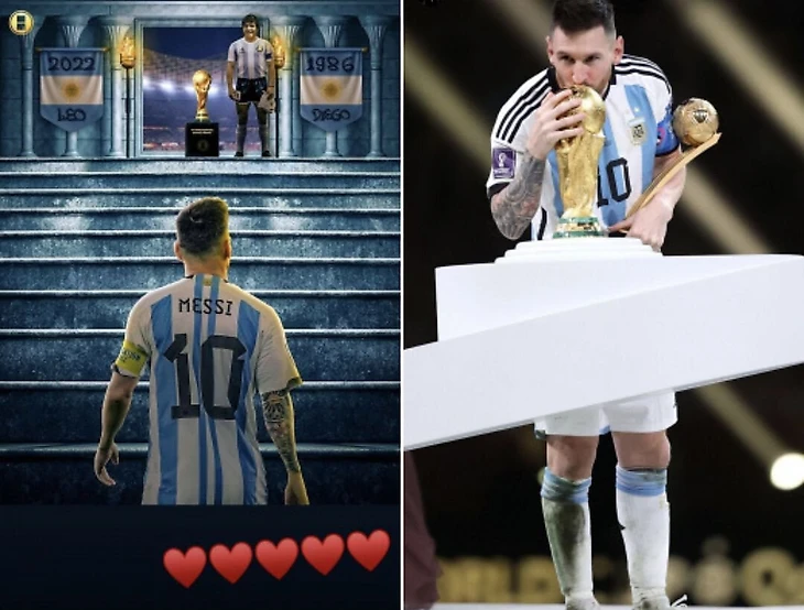 Еще один аргентинец, форвард «Црвены Звезды» Лука Вильдоса опубликовал в соцсетях сначала рисунок, на котором изображен Диего Марадона с Кубком мира-1986 и Месси, идущий к своему трофею, а затем фотографию Лионеля, целующего Кубок во время награждения.
