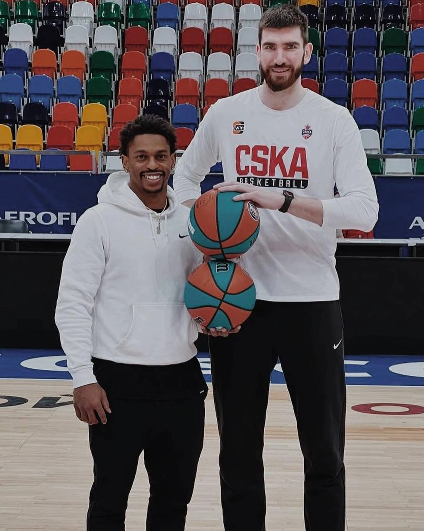 Самый низкий и самый высокий игроки Единой лиги ВТБ Каспер Уэйр и Андрей Десятников (оба – ЦСКА) поздравили с днем рождения баскетбола, повторив знаменитое фото Маггси Богза и Манута Бола.