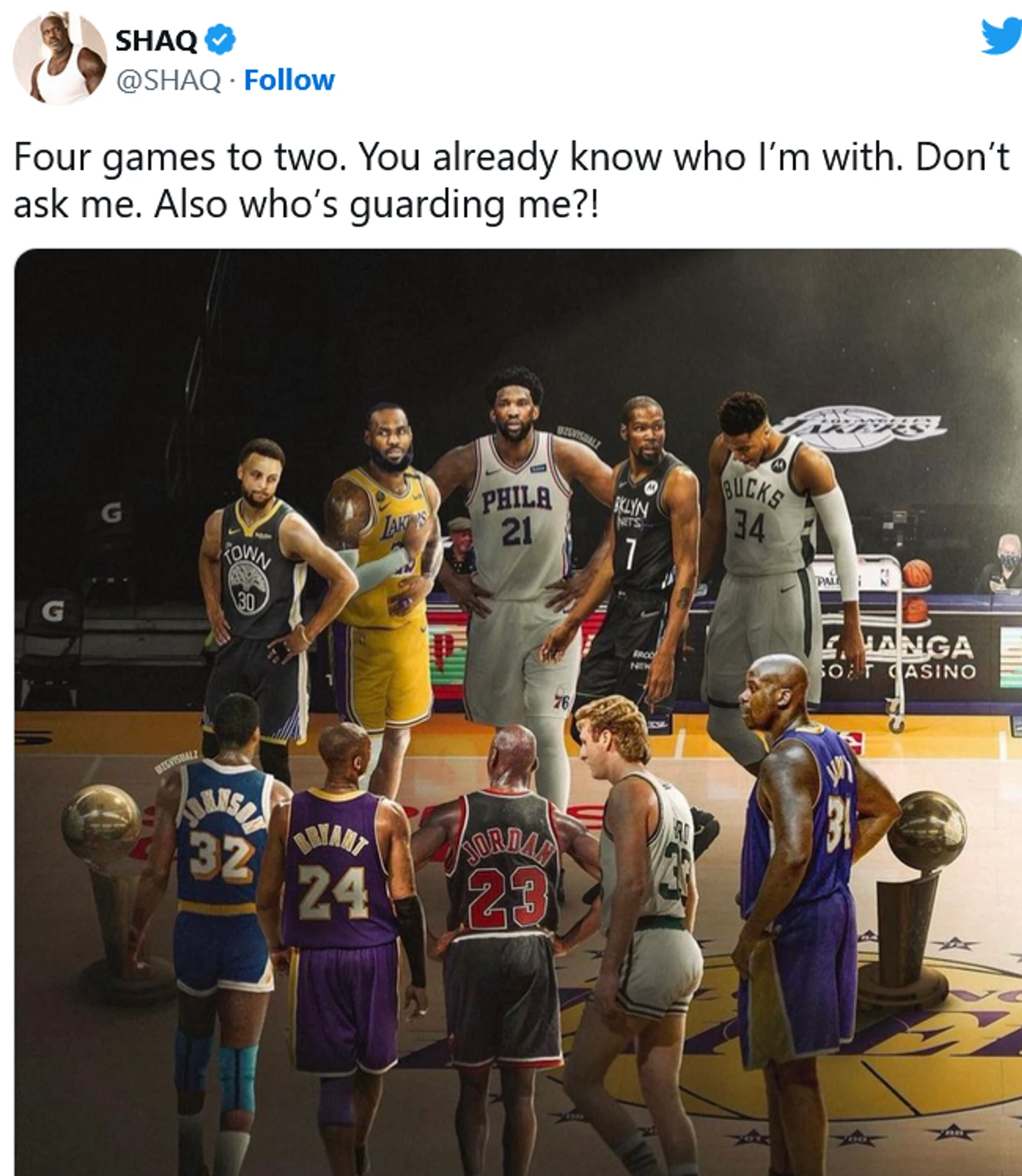 Четырехкратный чемпион НБА, ныне эксперт TNT Шакил О′Нил заявил, что команда, составленная из пяти легендарных игроков НБА, победила бы сборную нынешних суперзвезд лиги в серии из 7 матчей.
