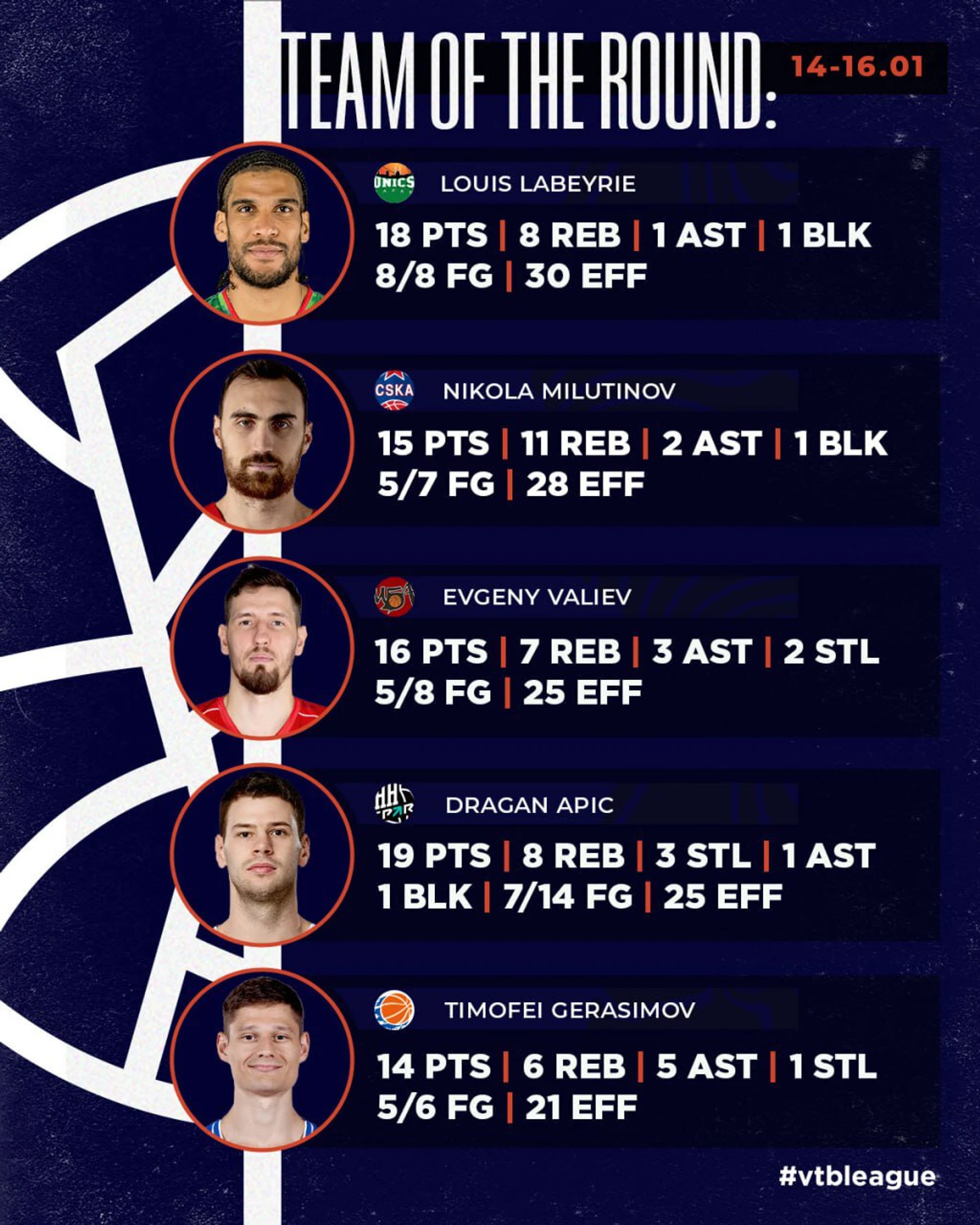 Единая лига ВТБ представила символическую пятерку игрового раунда.