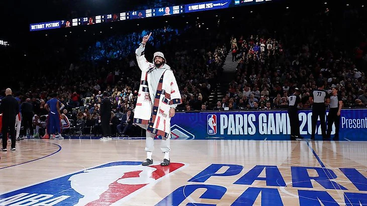 Жоаким Ноа в необычном наряде посетил матч НБА в Париже
