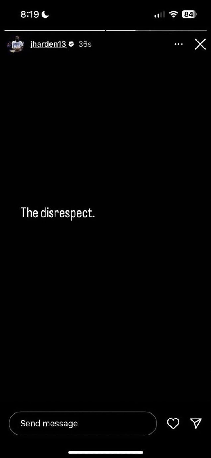 После оглашения результатов голосования тренеров за резервистов Звездного уикенда Харден выложил в соцсетях картинку с надписью «Неуважение».