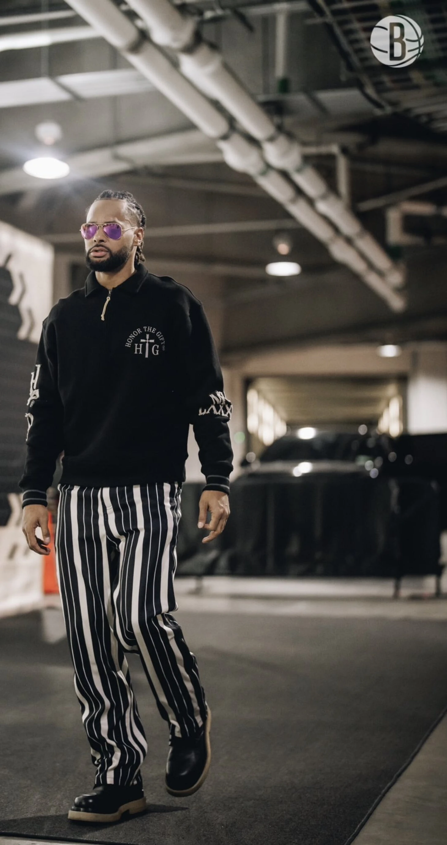 Разыгрывающий «Бруклина» Патрик Миллс пришел на матч с «Вашингтоном» в субботу в одежде от бренда коллеги из «Лейкерс» Расселла Уэстбрука Honor The Gift.