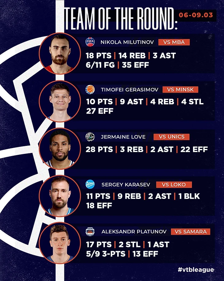 Милутинов, Герасимов, Лав, Карасев и Платунов – в символической пятерке тура Лиги ВТБ