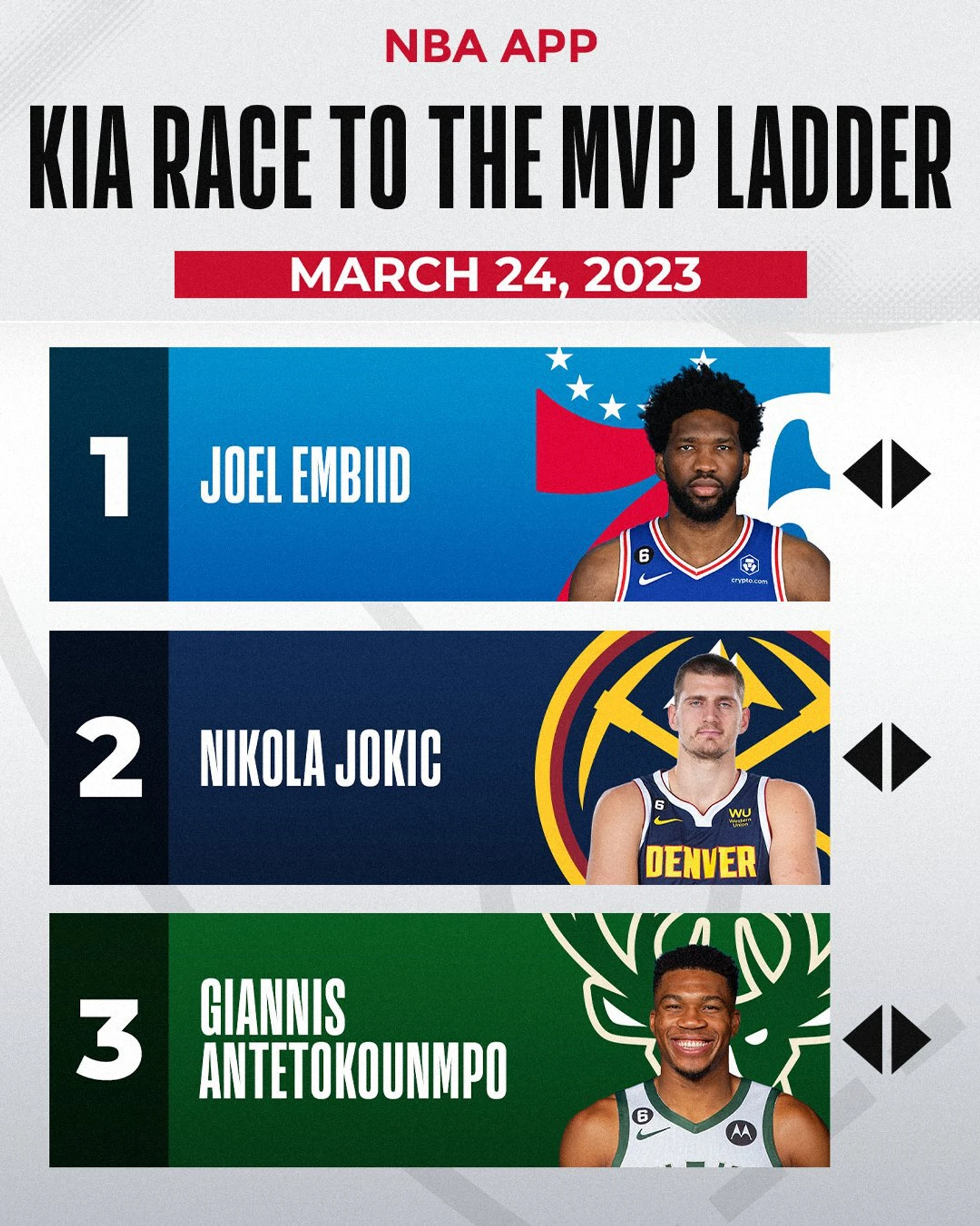17 марта центровой «Филадельфии» Джоэл Эмбиид обошел лидера «Денвера» Николу Йокича и продолжает удерживать первую строчку в списке самых ценных игроков сезона за две недели до конца регулярного чемпионата.