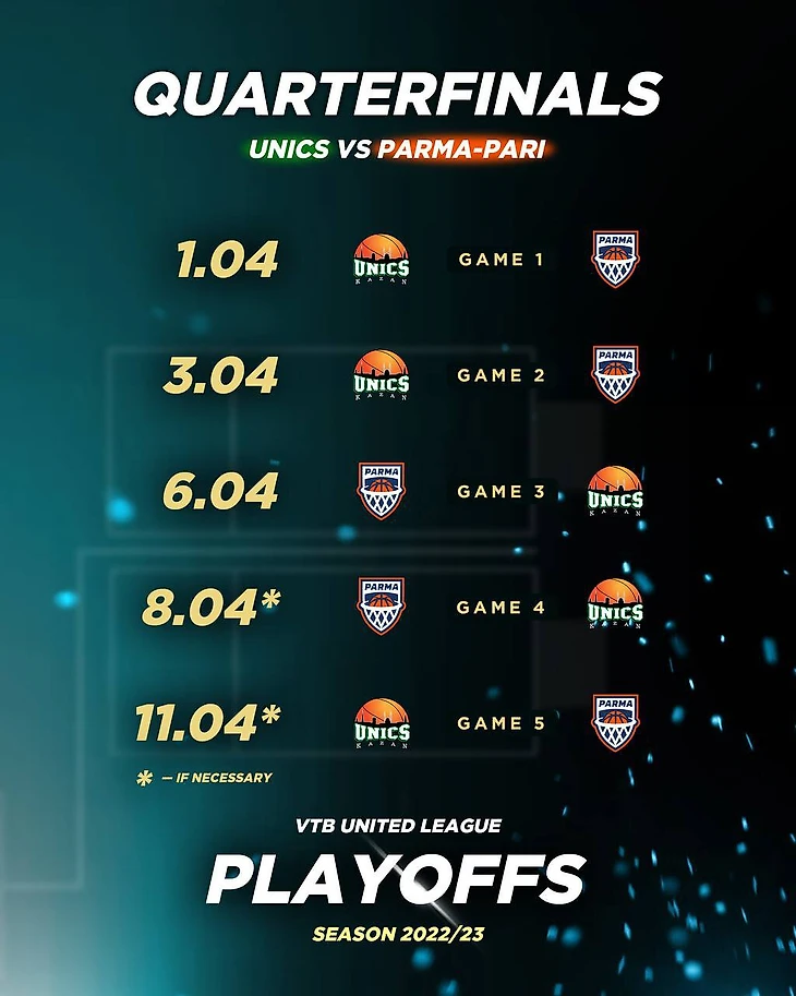 1 апреля состоятся первые матчи в сериях УНИКС (2) – «Парма»(7) и «Зенит» (3) – МБА (6).