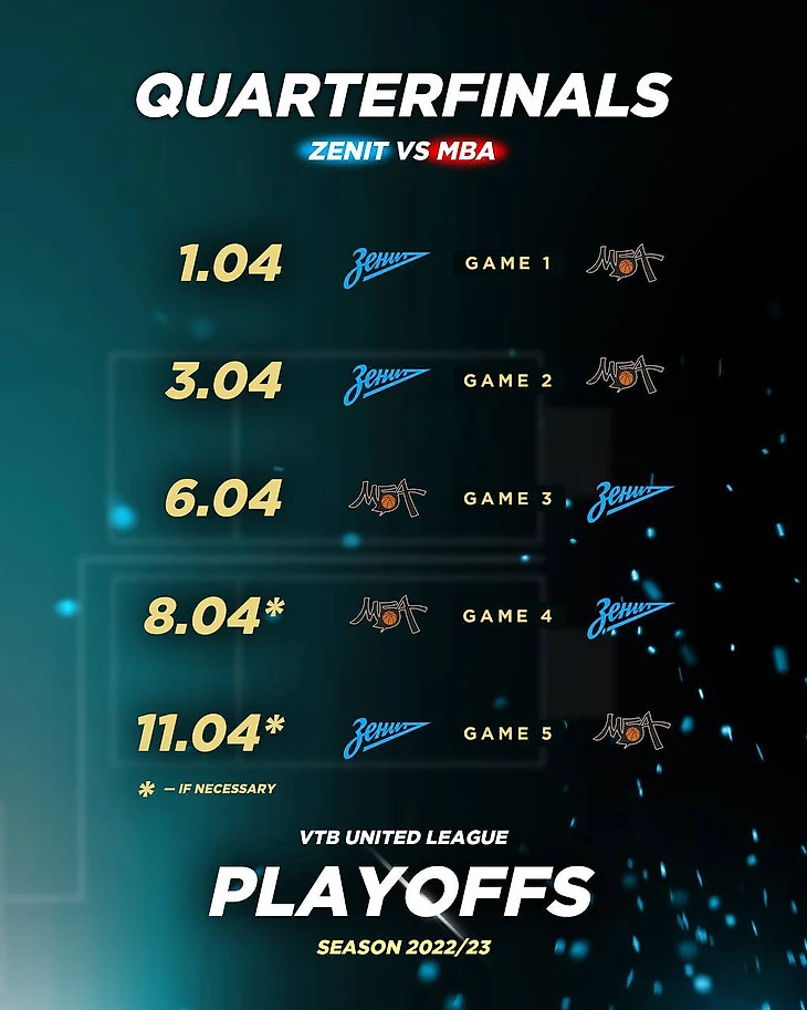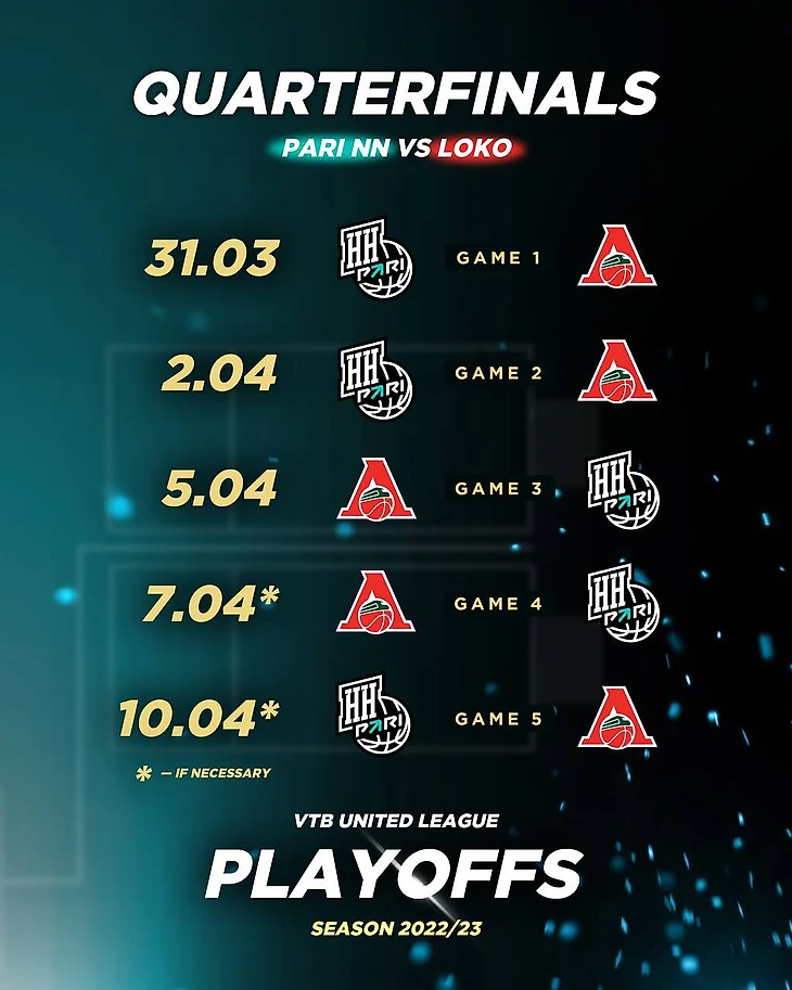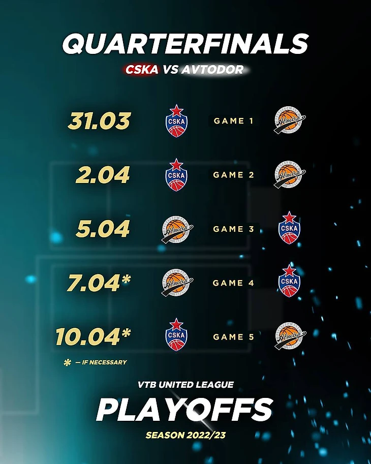 Единая лига ВТБ опубликовала расписание матчей всех четвертьфинальных серий плей-офф сезона-2022/23.