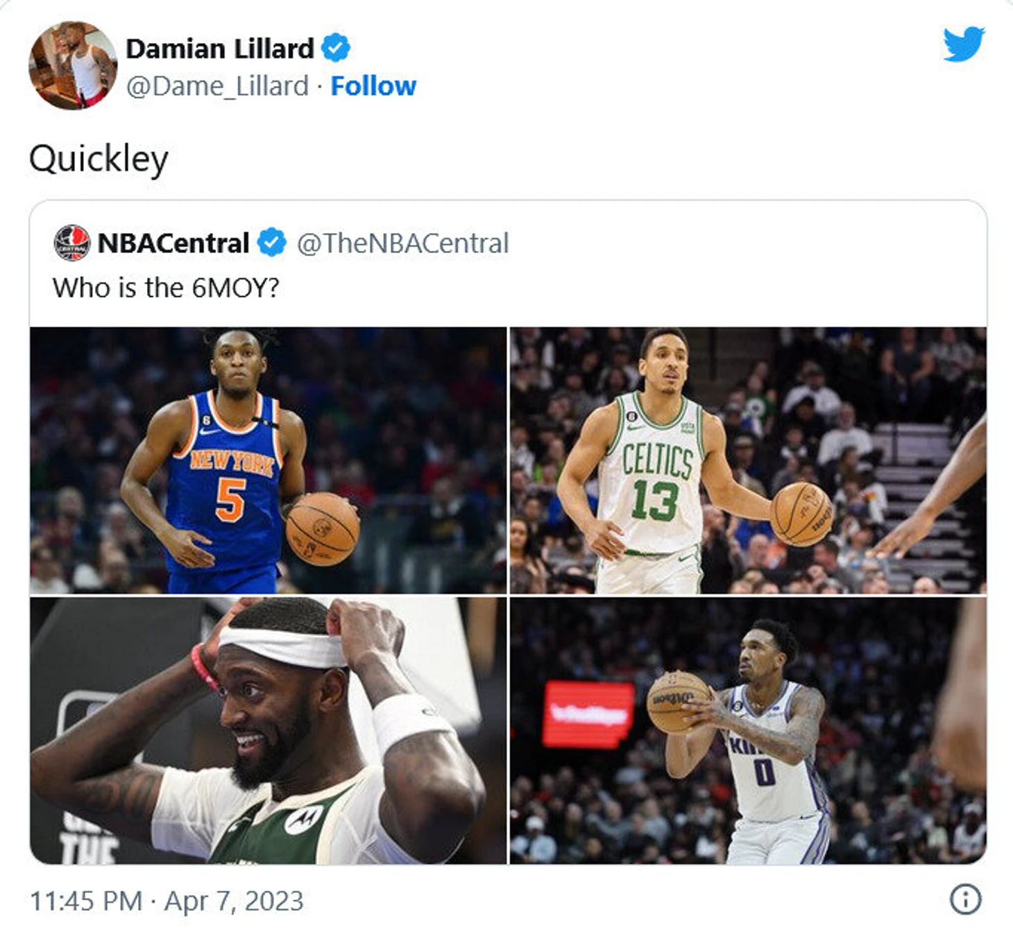 Лиллард ответил на твит, в котором были предложены четыре кандидатуры: Куикли, Малкольм Брогдон («Бостон»), Бобби Портис («Милуоки») и Малик Монк («Сакраменто»).
