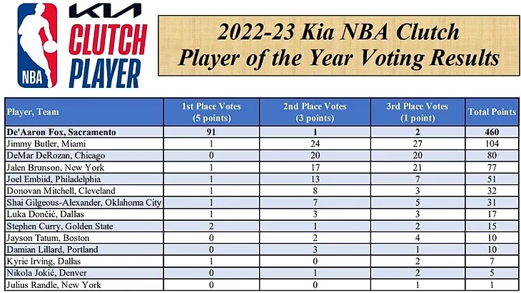 Фокс по итогам регулярного чемпионата стал лучшим в лиге по результативности в клатче, набрав 194 очка.